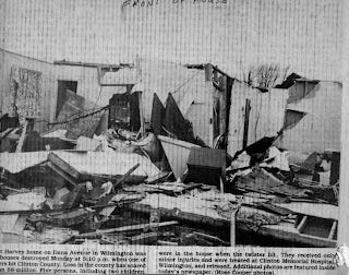 While I was watching TV from the recliner, my five-year-old brother was peering out the window to observe the storm. Mom entered to turn off the TV, Grandpa entered to speak with me, and Grandma walked by me to pull him away from the window. It suddenly struck at that point.